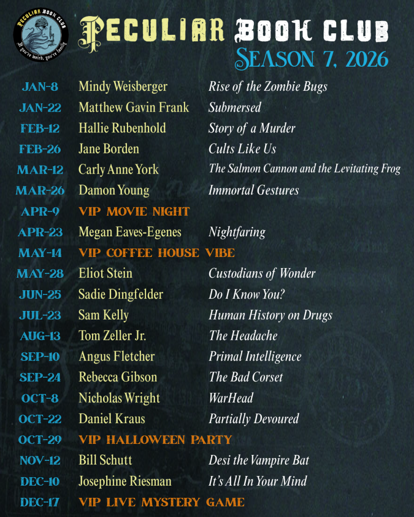 A found family of curious book lovers, meeting twice a month for live-chats about weird science, bizarre history, true crime & strange medicine.